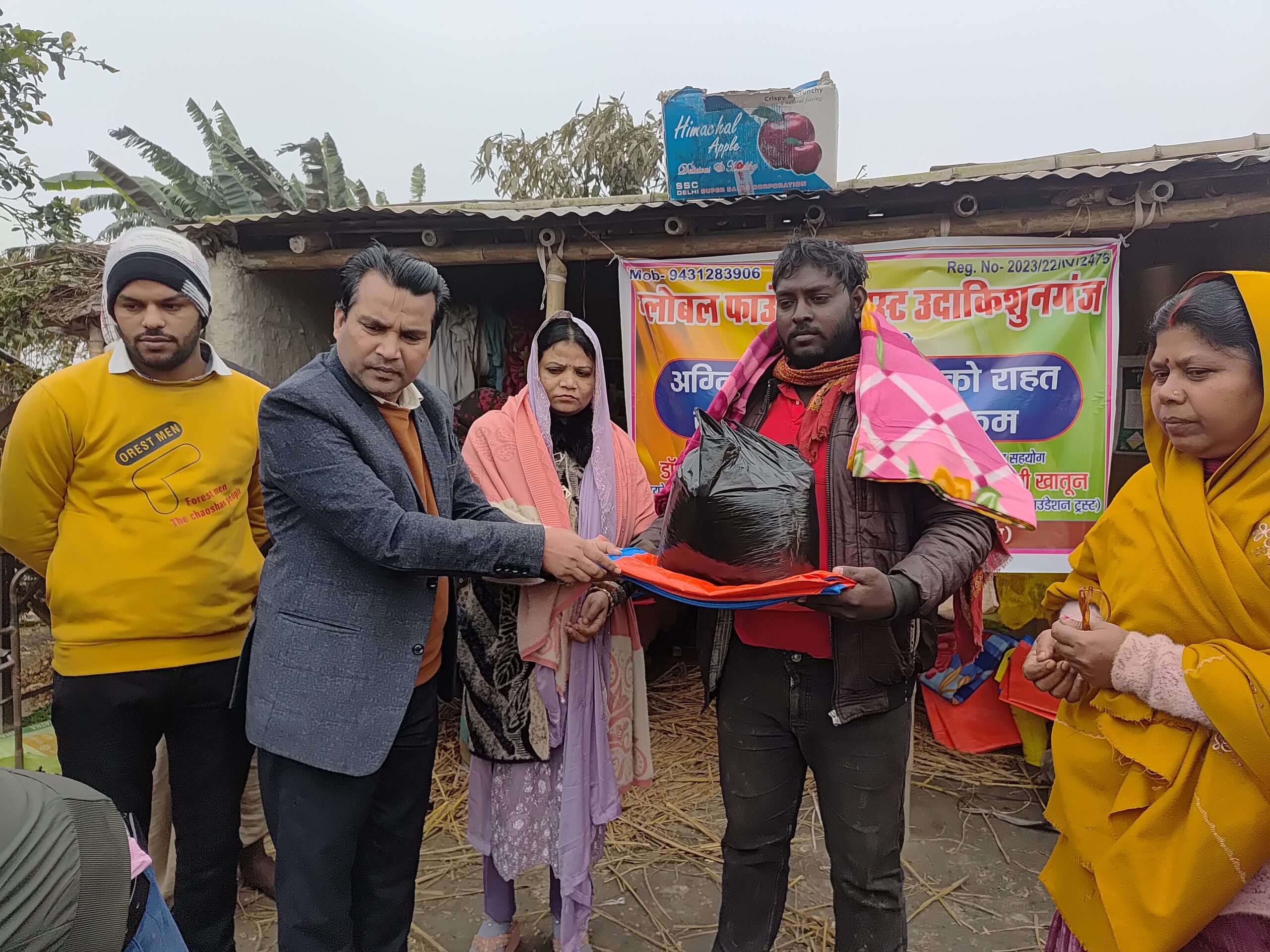 अग्नि पीड़ित परिवार के लिए मसीहा बने ग्लोबल फाउंडेशन ट्रस्ट, राशन–तिरपाल व आर्थिक सहायता प्रदान