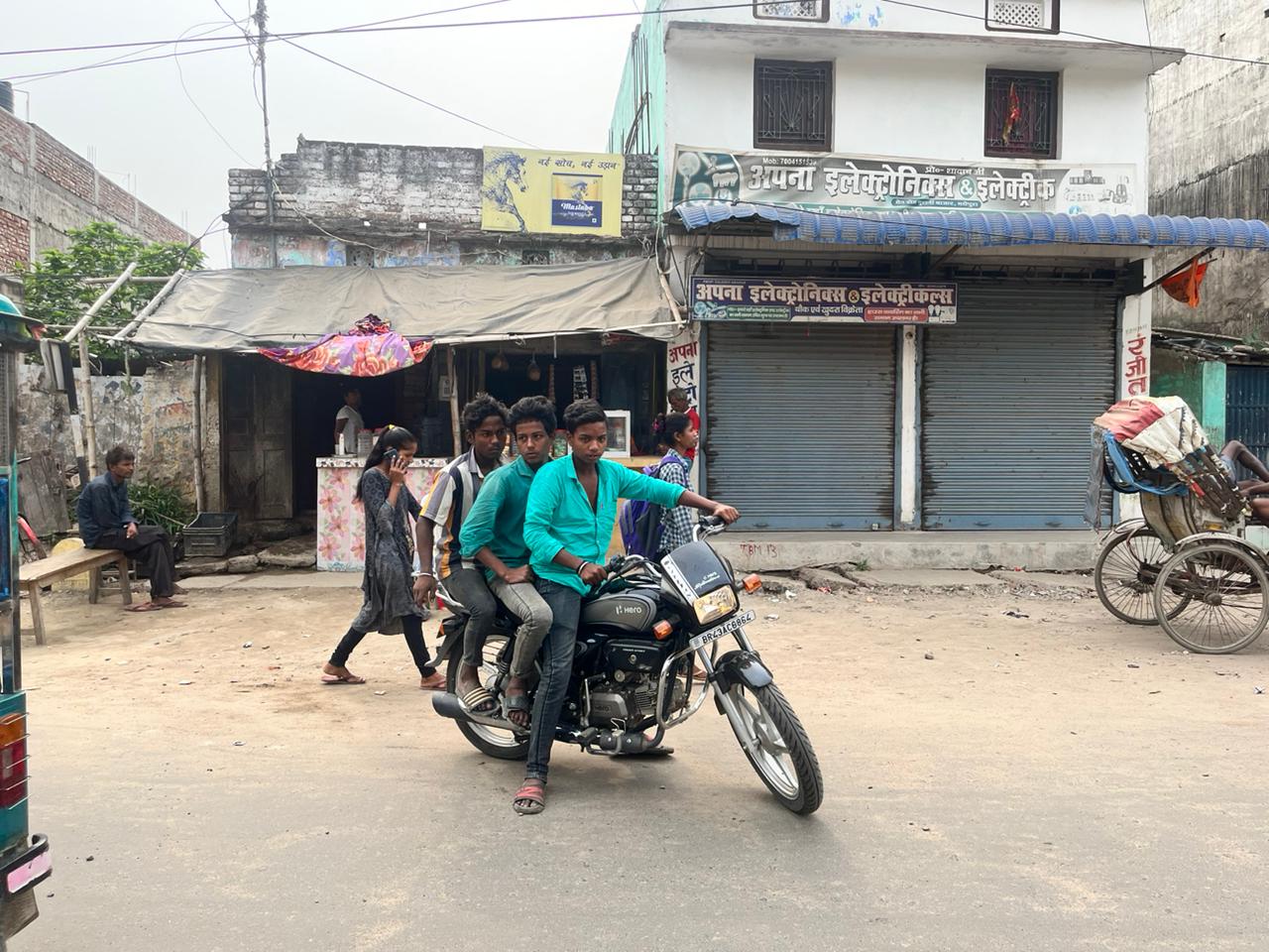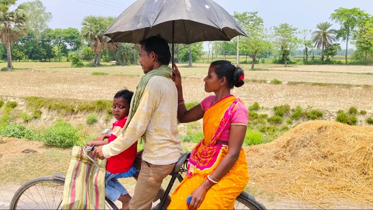 गर्मी से बचने का उपाय कर साइकिल से सफर करते परिवार